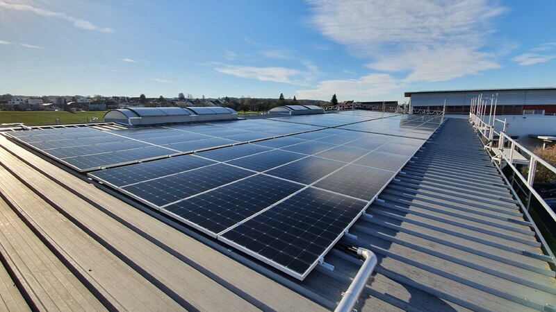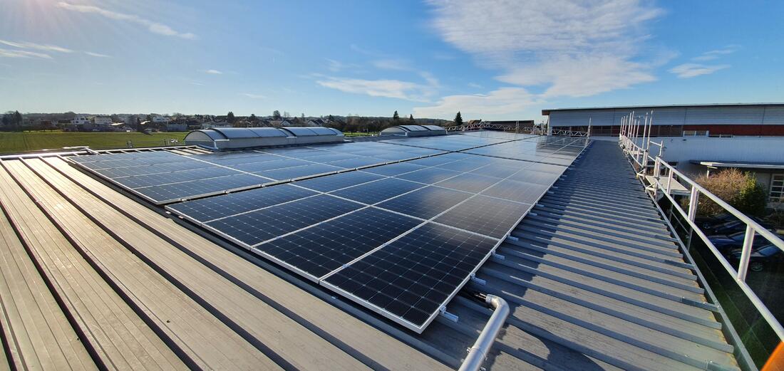 Dank unserer Photovoltaik-Anlage gewinnen wir jährlich rund 120'000 kWh Strom aus Sonnenenergie und sparen damit pro Jahr mehr als 50 Tonnen CO2.