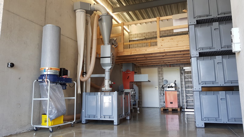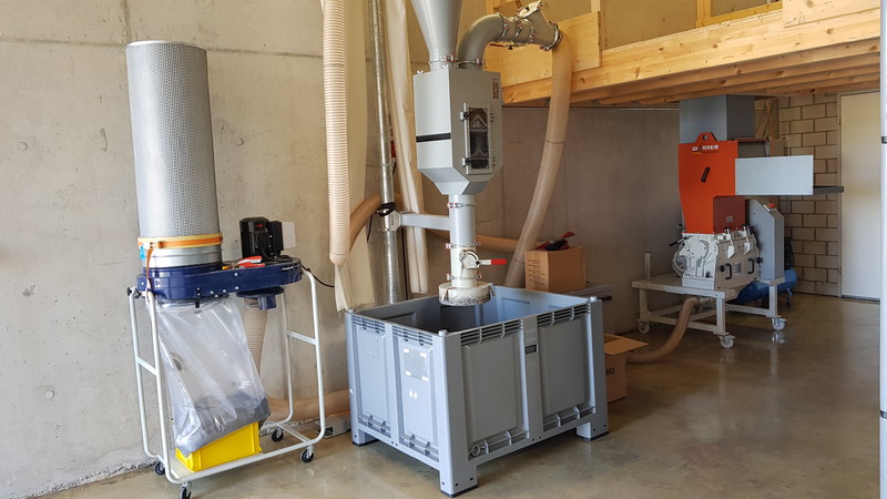 Unsere Recyclinganlage ermöglicht uns die Wiederverwendung bereits genutzter Rohstoffe. Dadurch sorgen wir für eine nachhaltige und umweltfreundliche Produktion, weil so unsere Produktionsausschüsse gemahlen, entstaubt und anschliessend wieder dem Produktionskreislauf zugeführt werden.